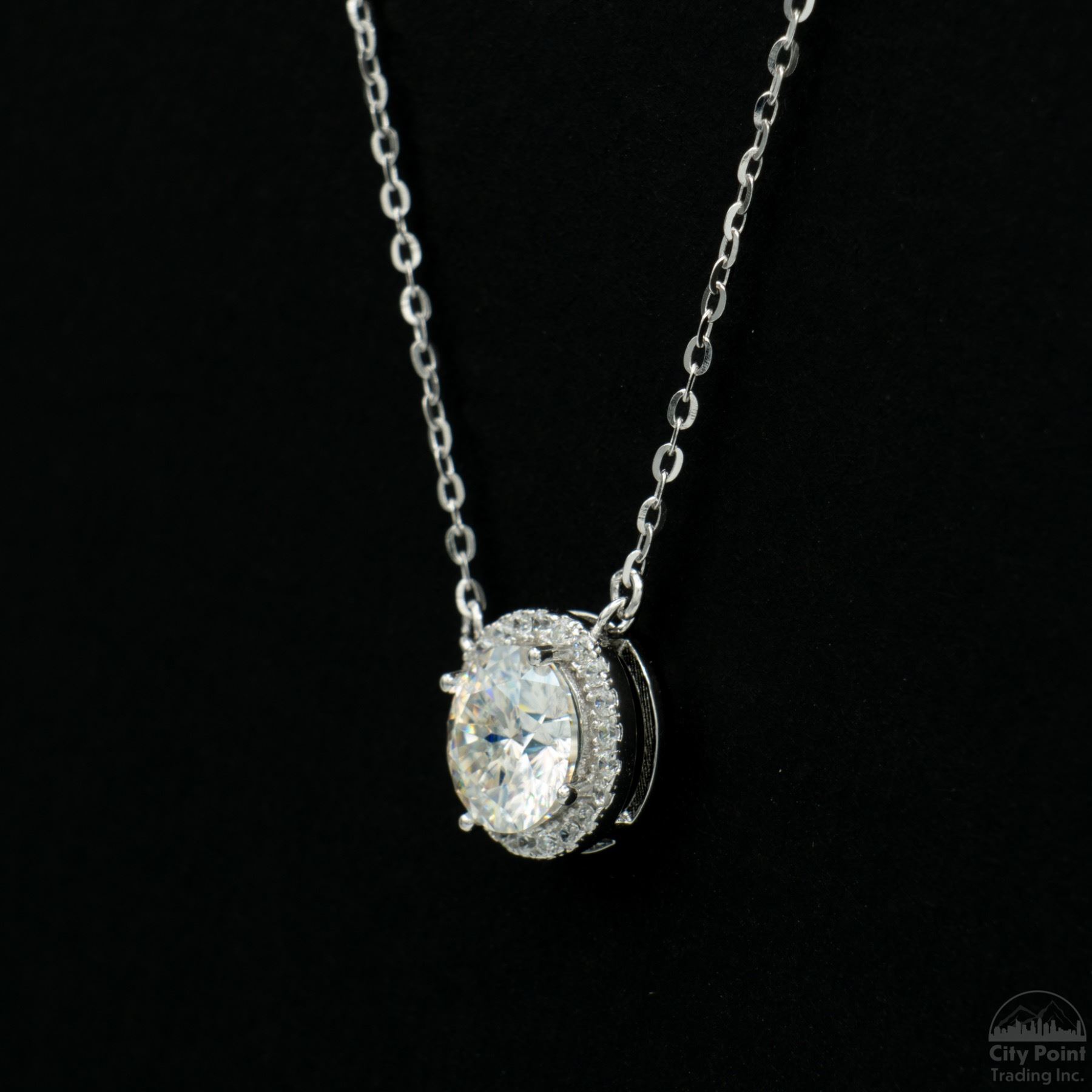 Necklace with Pendant, 1.2 Carat Round Cut Moissanite, Platinum-Plated Sterling Silver