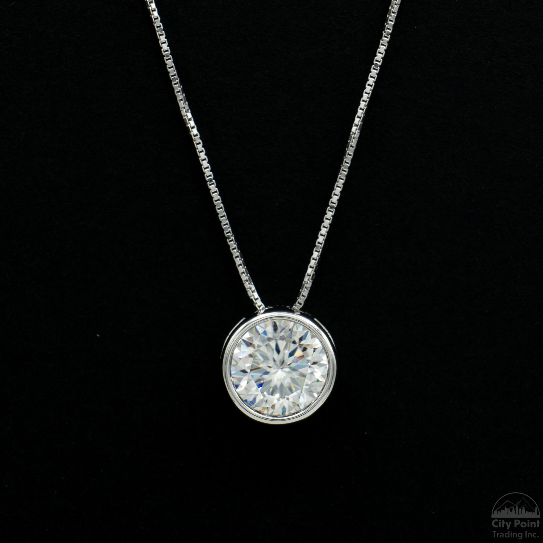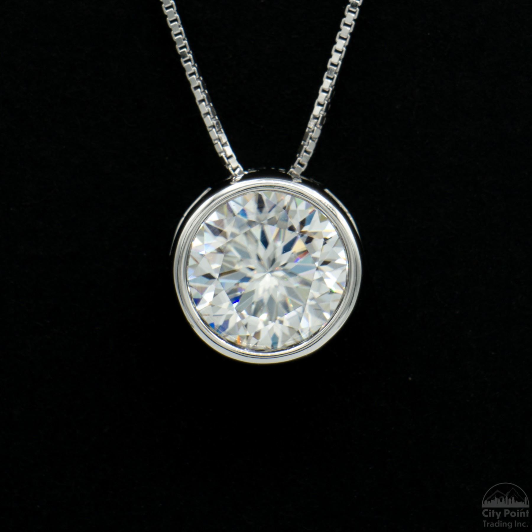 Necklace with Pendant, 2 Carat Round Cut Moissanite, Platinum-Plated Sterling Silver