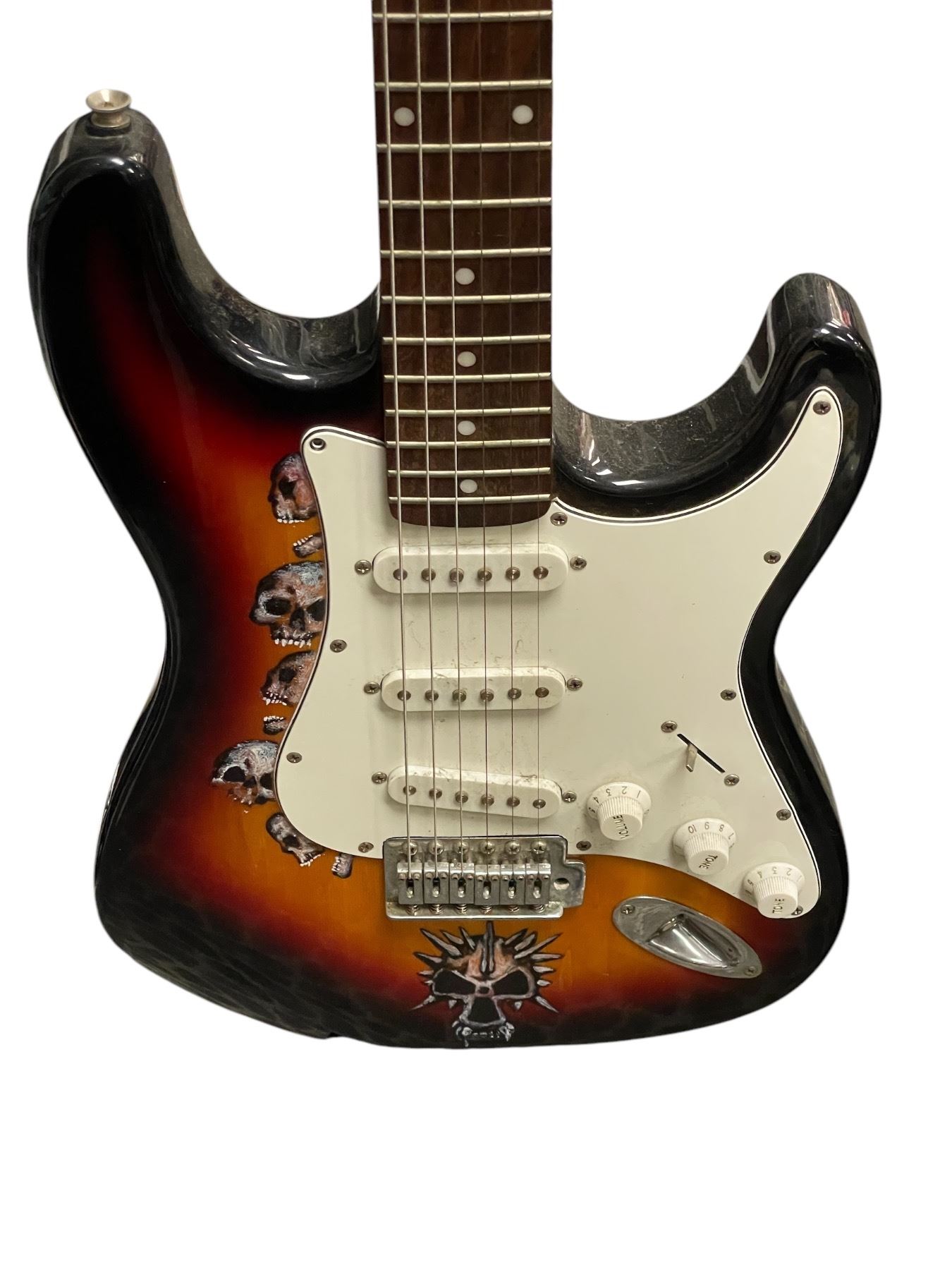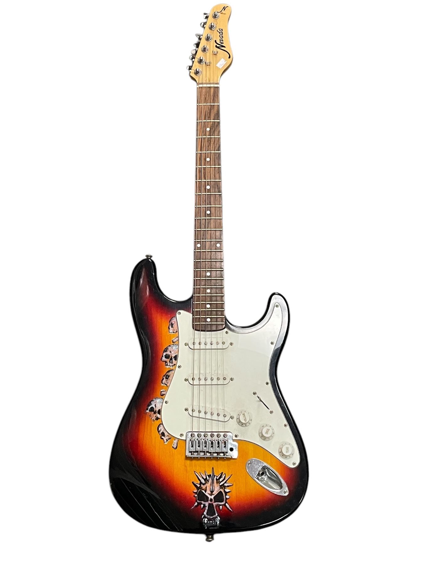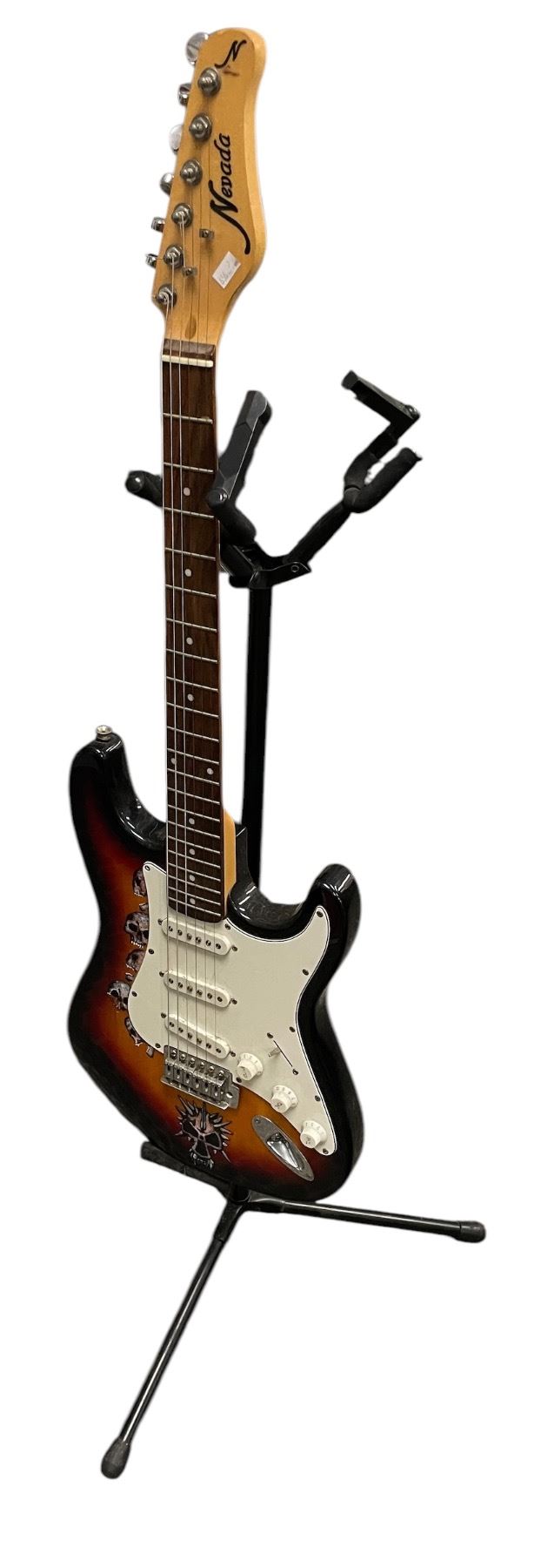 Nevada Electric Guitar With Hand Painted Skulls, With Guitar Stand