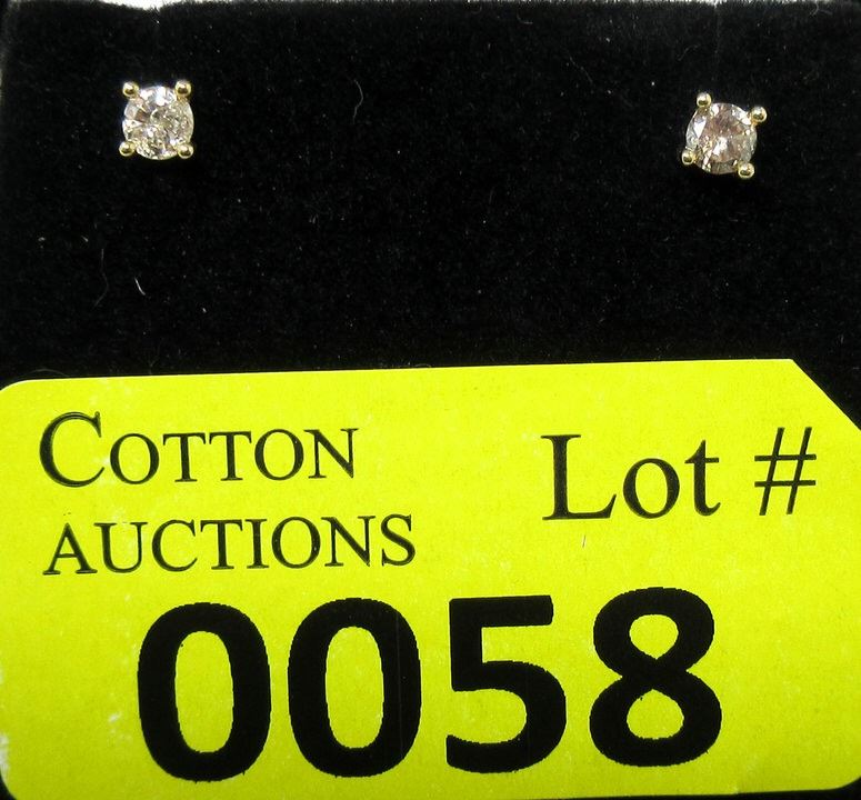 Total of Half Carat of Diamonds. Yellow Gold Claw Setting. Post & Butterfly.