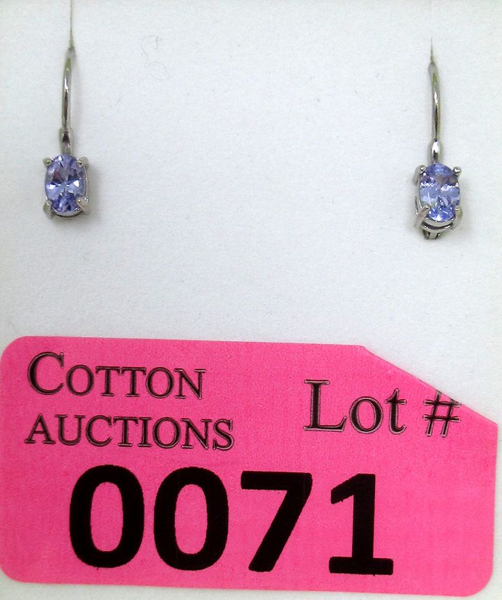 Oval cut. Lively purple/blue colour. Lever style backs. Retail value $400.