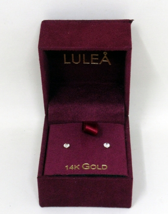3 mm round cut solitaire CZ gemstones. 14 KT post and bezel with silicone backs.