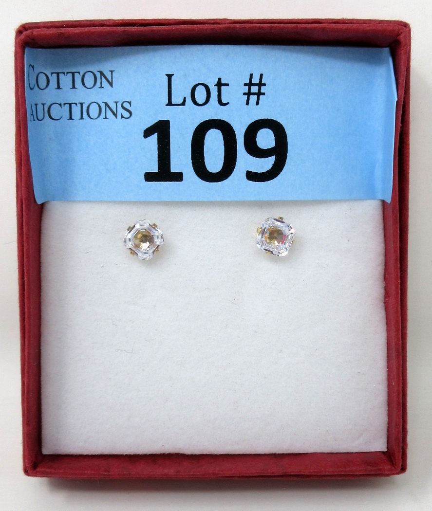 2 CT. Asscher cut. Post & butterfly backs. Includes $290 certificate.