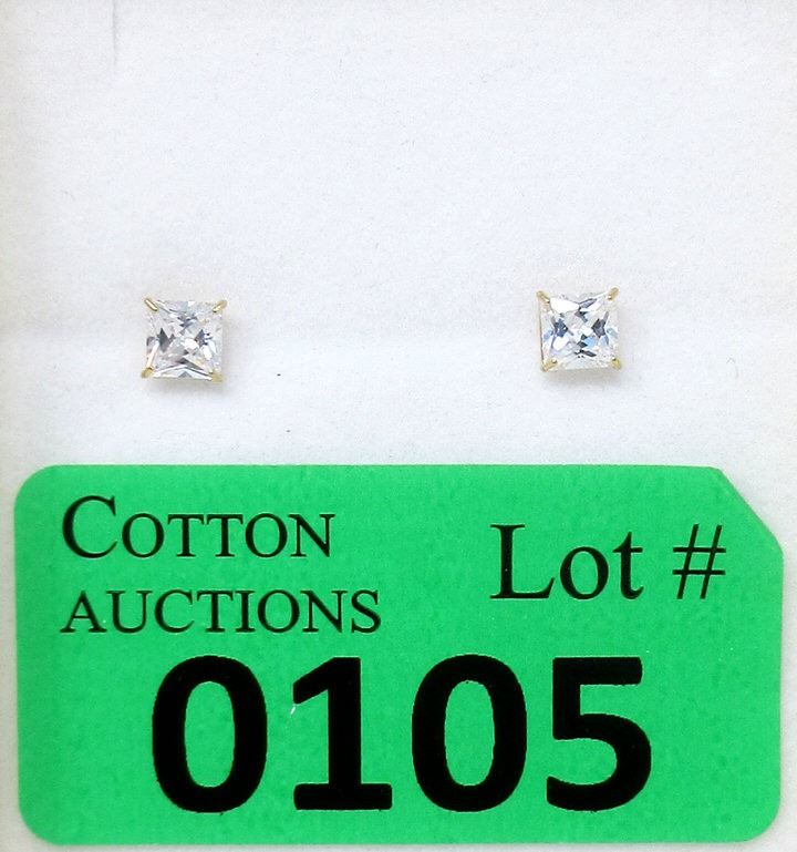 1.5 CT Princess cut. Post & butterfly backs. Includes $320 certificate.
