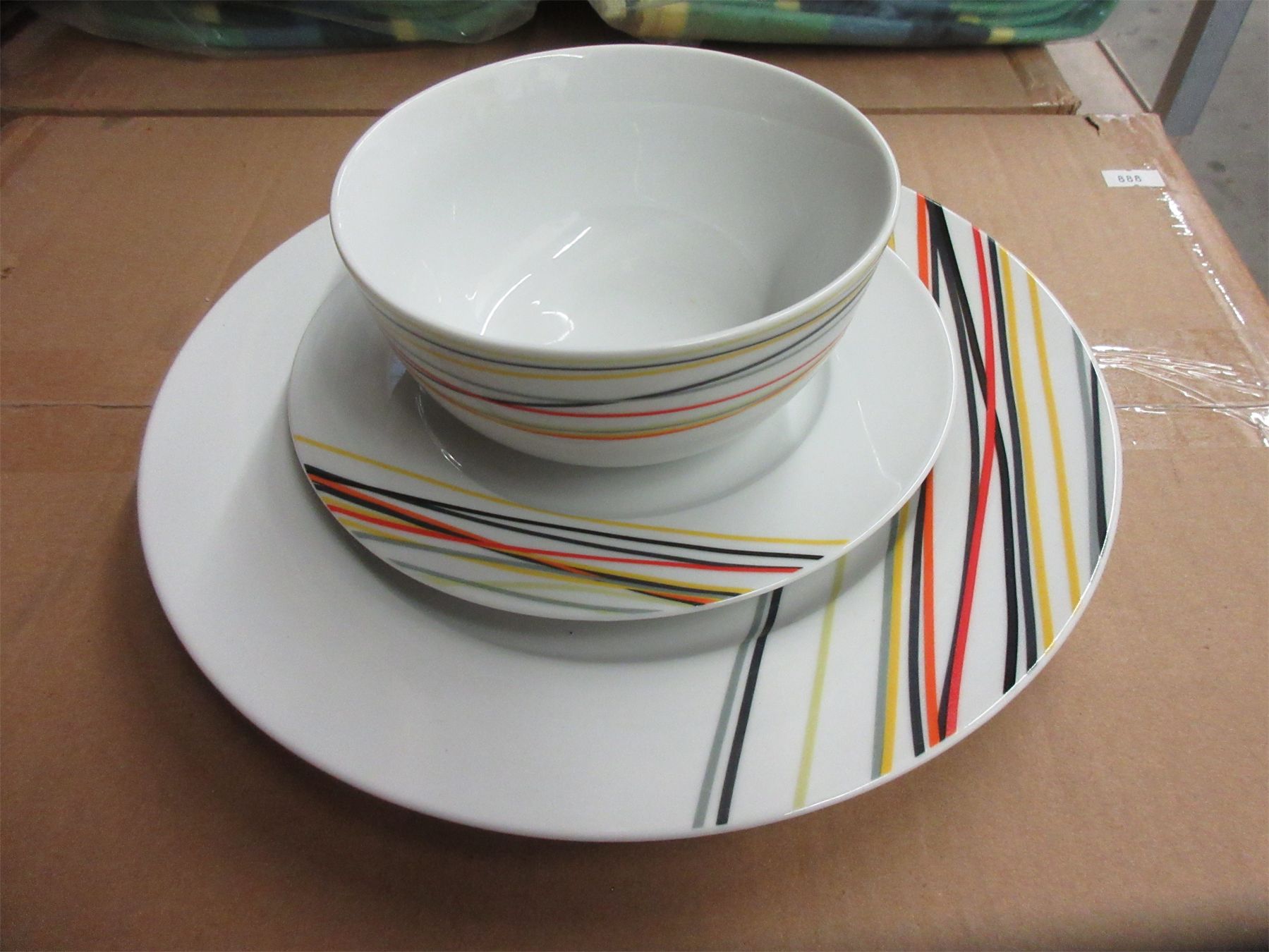 6 Dinner plates, 6 side plates and 6 bowls. Unassembled in box.