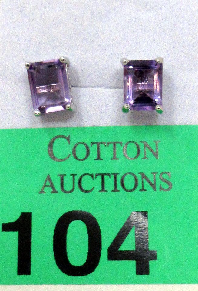 Emerald cut amethysts. Post & butterfly backs. Includes a $230 certificate.