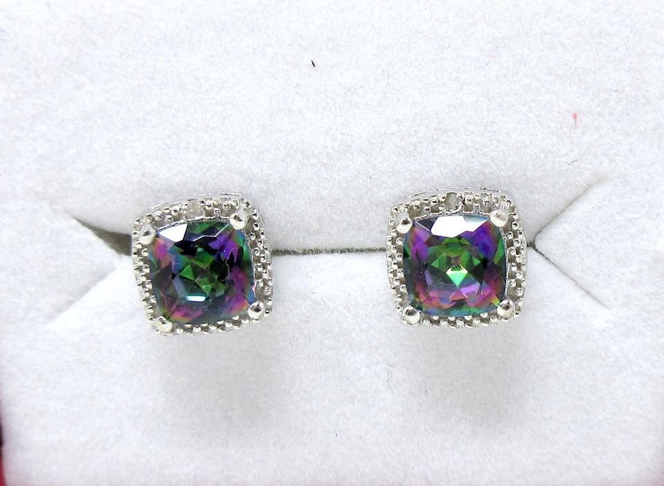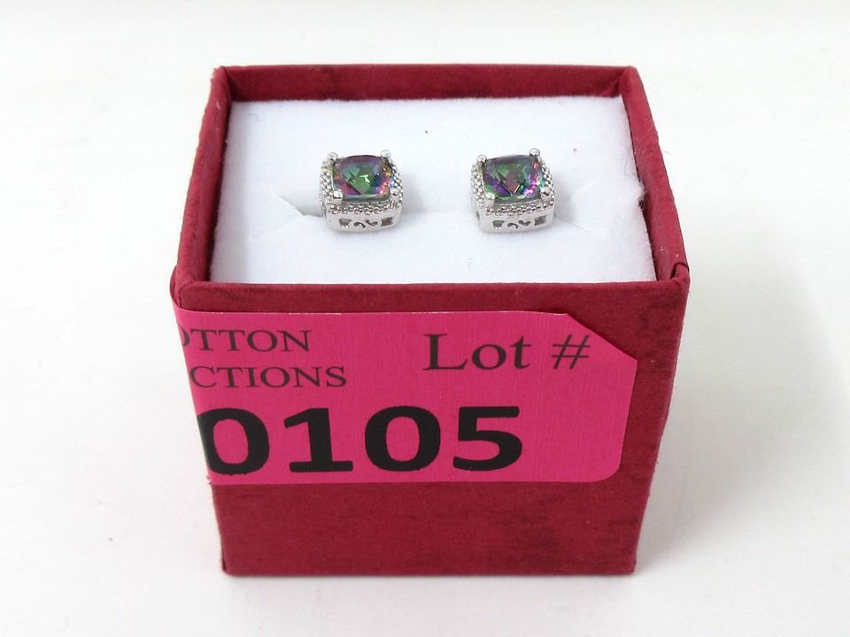 Square cut topaz set in sterling silver. Post & butterfly backs. Includes a $300 certificate.