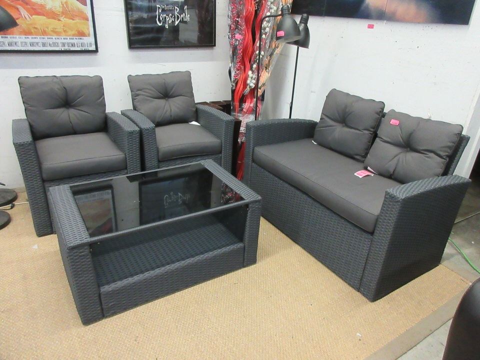 Kurtis Collection. 48" Loveseat, 2 chairs and a glass topped coffee table. Unassembled in box.