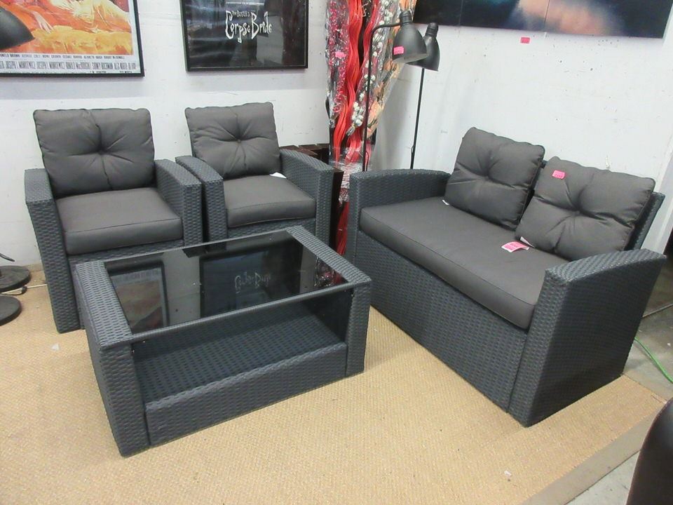 Kurtis Collection. Loveseat, 2 chairs and a glass topped coffee table. Unassembled in box.