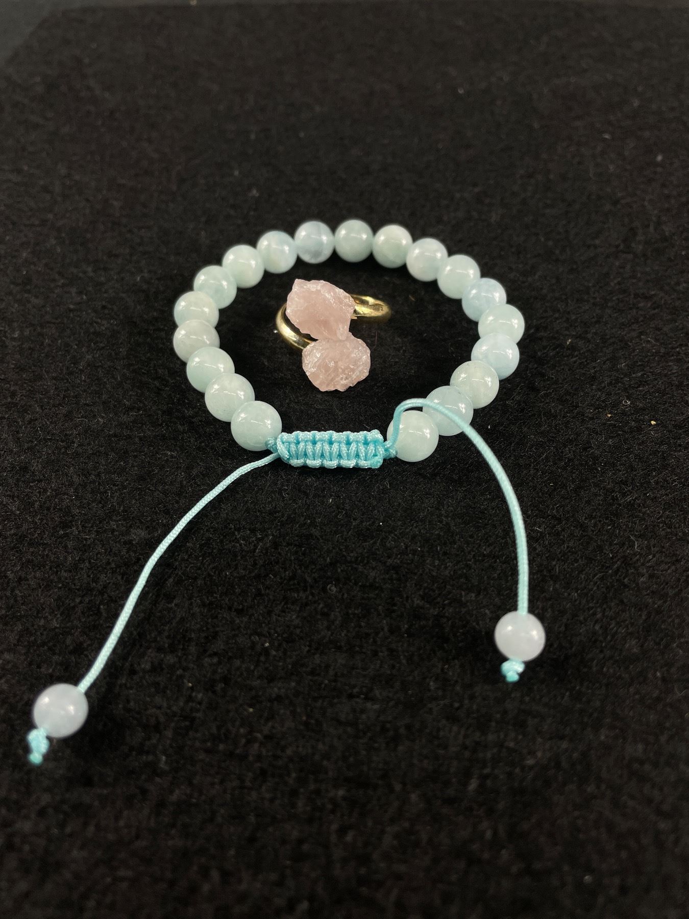 New 8mm Aquamarine Bracelet $150 & New Adjustible Rose Quartz Ring