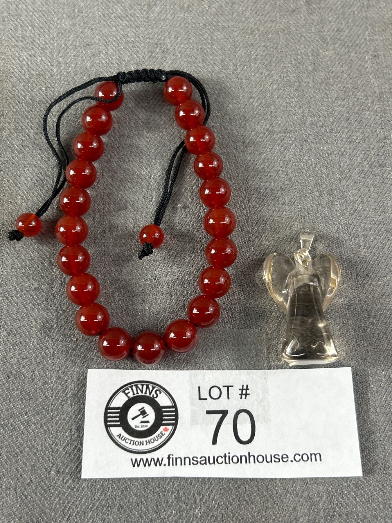 New 8mm Carnelian Bracelet Retails $150 & Smokey Quartz Angel Pendant $150