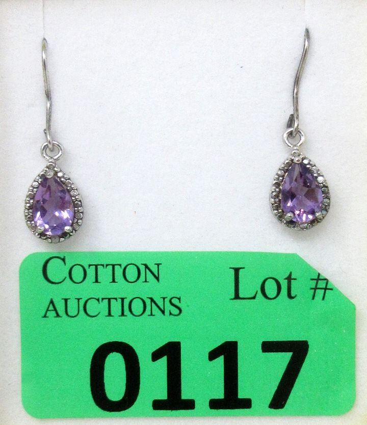 Pear cut amethysts set in sterling silver. French hook design. Retail value $260.