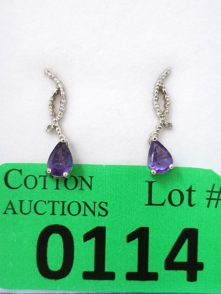 Pear cut amethysts set in sterling silver. Post & butterfly backs. Retail value $225.
