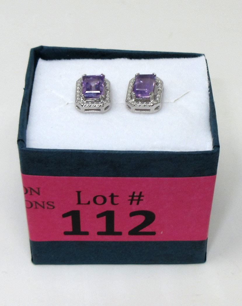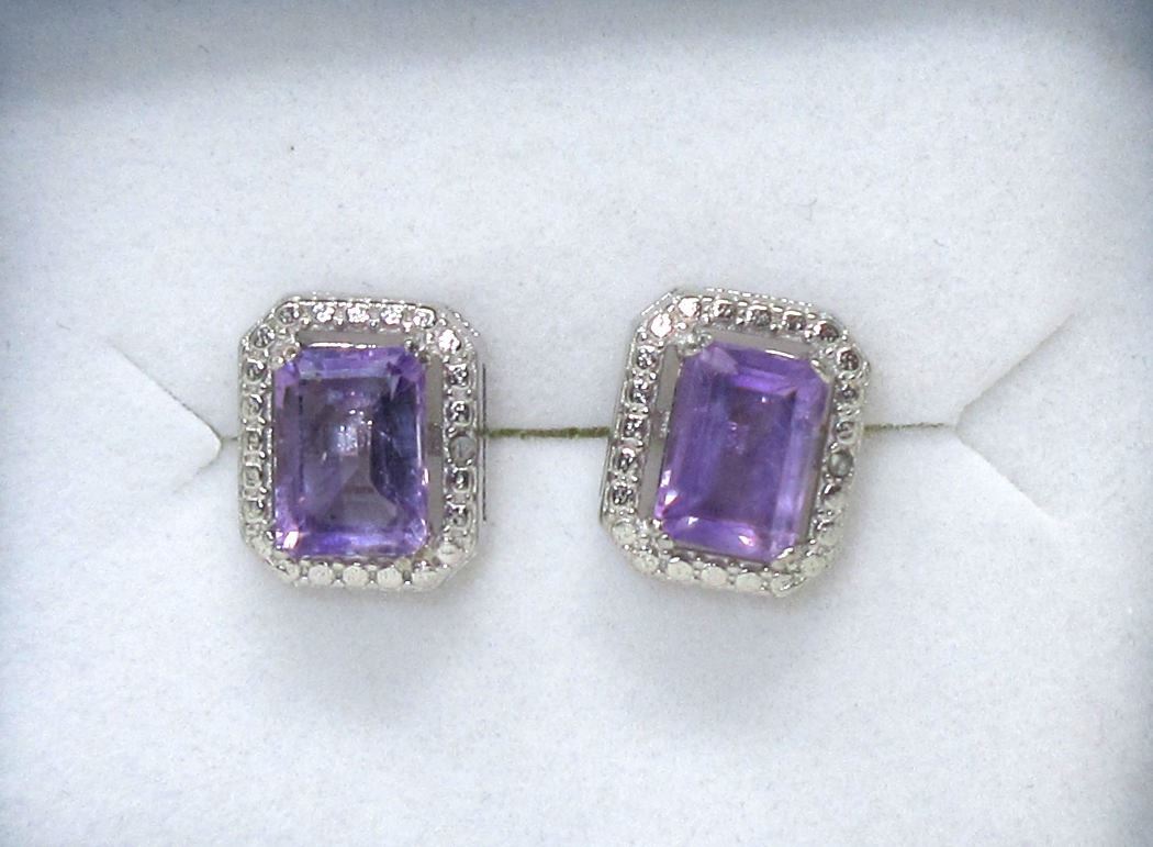 Emerald cut amethyst. Post & butterfly backs. Retail value $310.