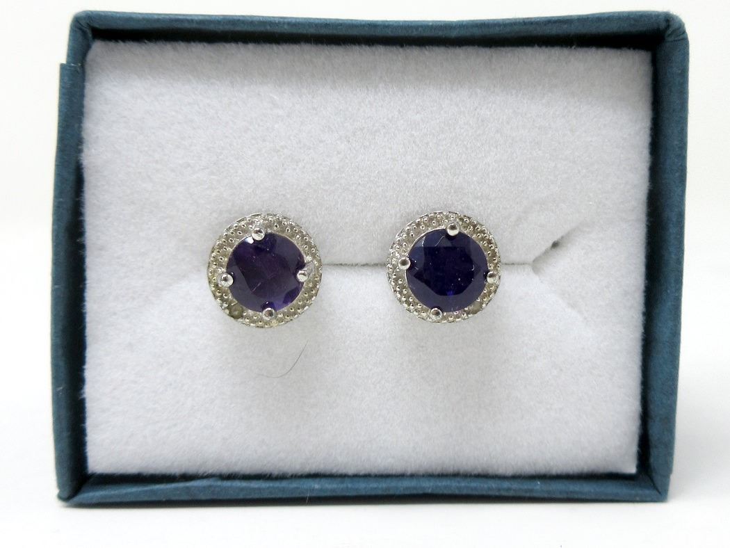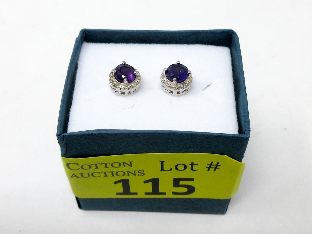 Round cut, rich deep purple amethyst. Post & butterfly backs. Retail value $275.