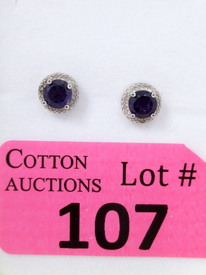 Round cut amethysts in halo settings. Post & butterfly backs. Includes $275 certificate.