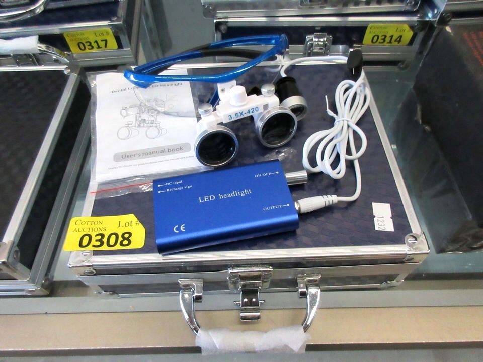 Removable 5 Watt Portable LED Headlight With Clip Filter. Glasses have attached 3.5X 420MM Binocular Loupe. Blue or White. Aluminum Box. Retail $74.99.