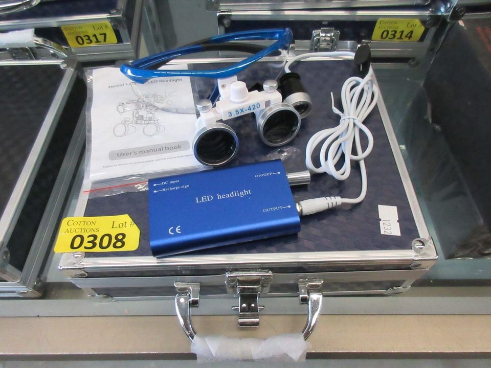 Removable 5 Watt Portable LED Headlight With Clip Filter. Glasses have attached 3.5X 420MM Binocular Loupe. Blue or White. Aluminum Box. Retail $74.99.