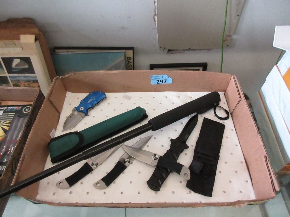 Folding knife with 3" blade, 3 piece set of throwing knives and 1" folding knife.