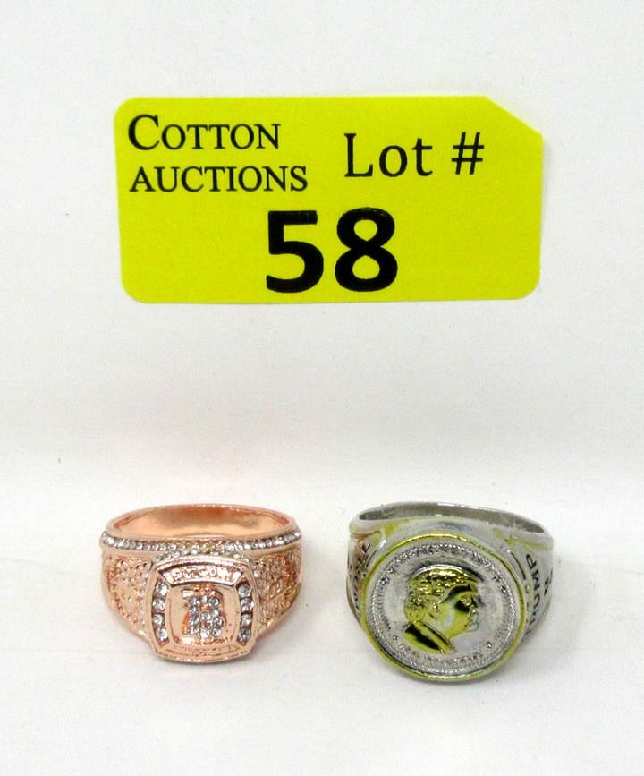 Rose Gold Plated Crystal Set Bit Coin Design Ring - Size 11 and President Donald Trump Ring - Size 12