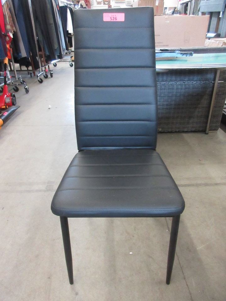 Cushioned seat and back in PU fabric. Unassembled in box.