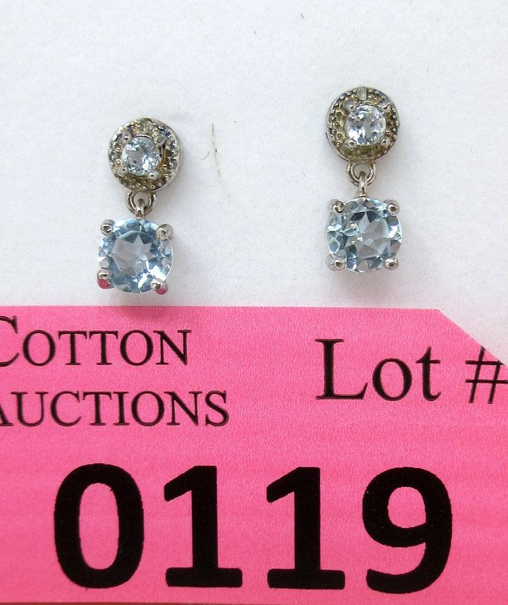 Round cut topaz set in sterling silver. Post & butterfly backs.