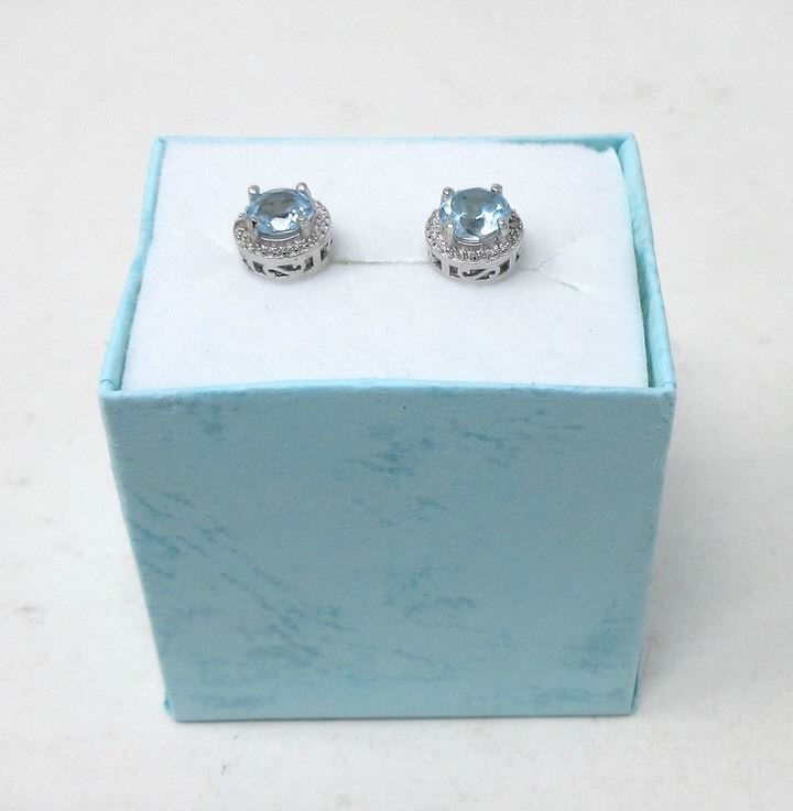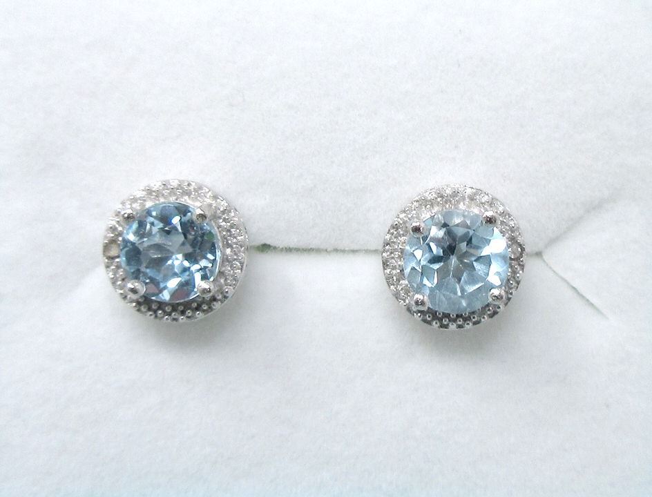 Lively Sky Blue Topaz. VS quality. 2 Diamonds. Sterling silver setting with Platinum overlay. With Certificate of Authenticity.