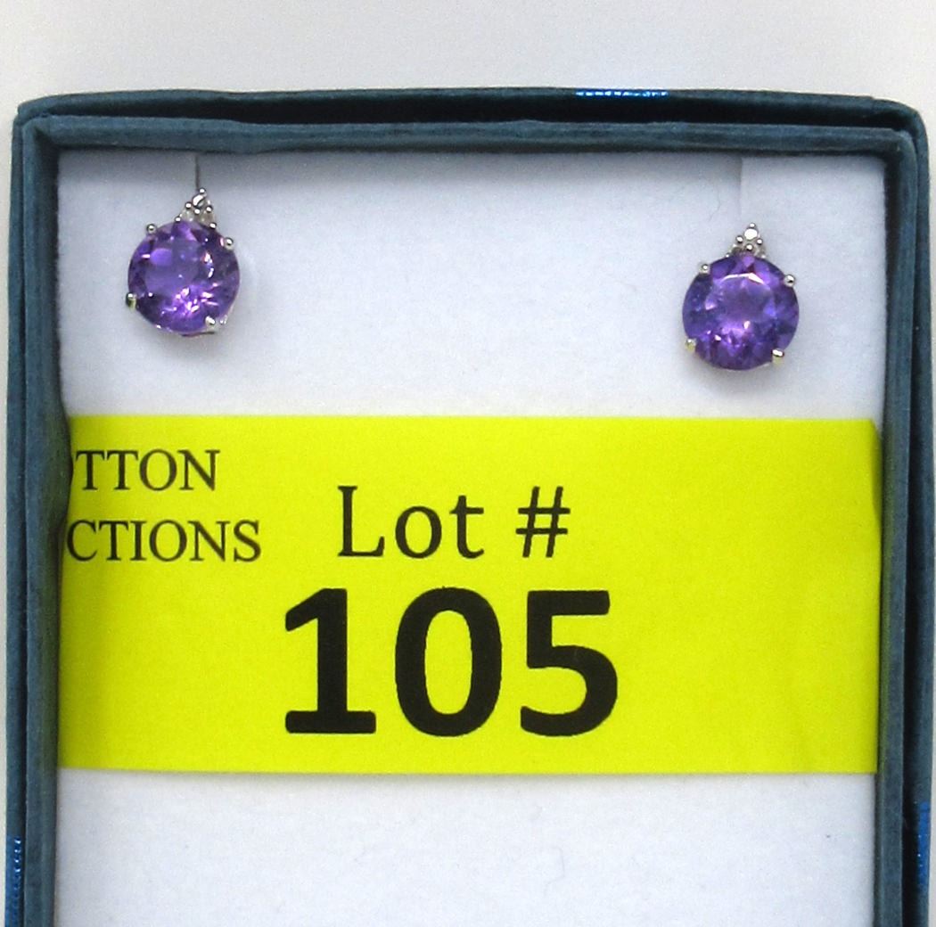 3.6 CT Round amethyst & 6 diamonds. Post & butterfly backs. Includes $350 certificate.