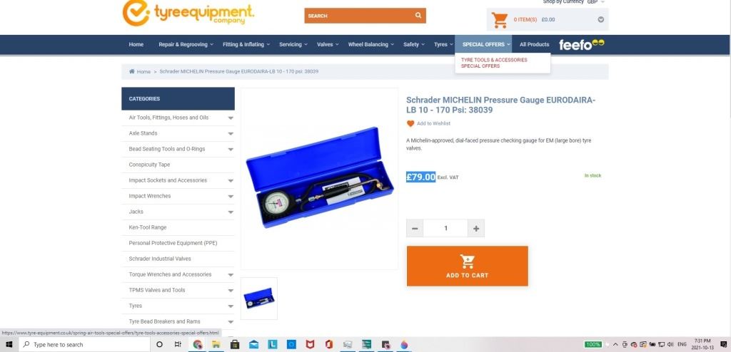 New European made Schrader MICHELIN Pressure Gauge EURODAIRA-LB 10 - 170 Psi