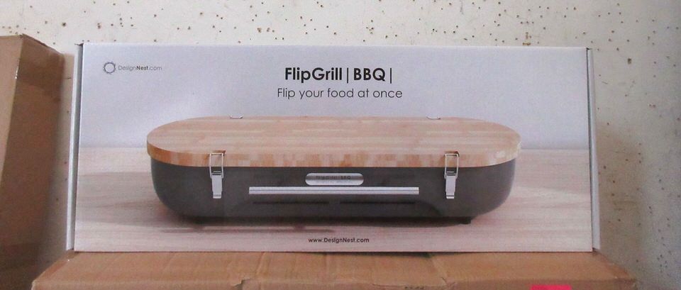 Flippable grills and integrated cutting board top. 9" x 24" x 6" tall.