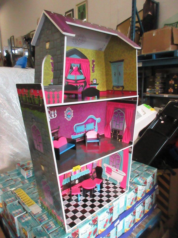 Doll House measures 30cm x 76cm x 114cm tall. Box weighs 13 kg and measures 59cm x 18cm x 41.5cm.