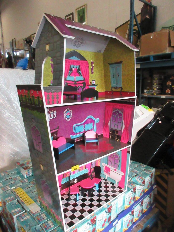Doll House measures 30cm x 76cm x 114cm tall. Box weighs 13 kg and measures 59cm x 18cm x 41.5cm.