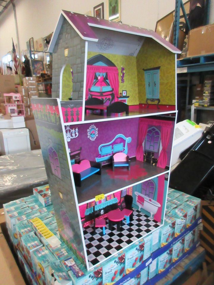 Doll House measures 30cm x 76cm x 114cm tall. Box weighs 13 kg and measures 59cm x 18cm x 41.5cm.