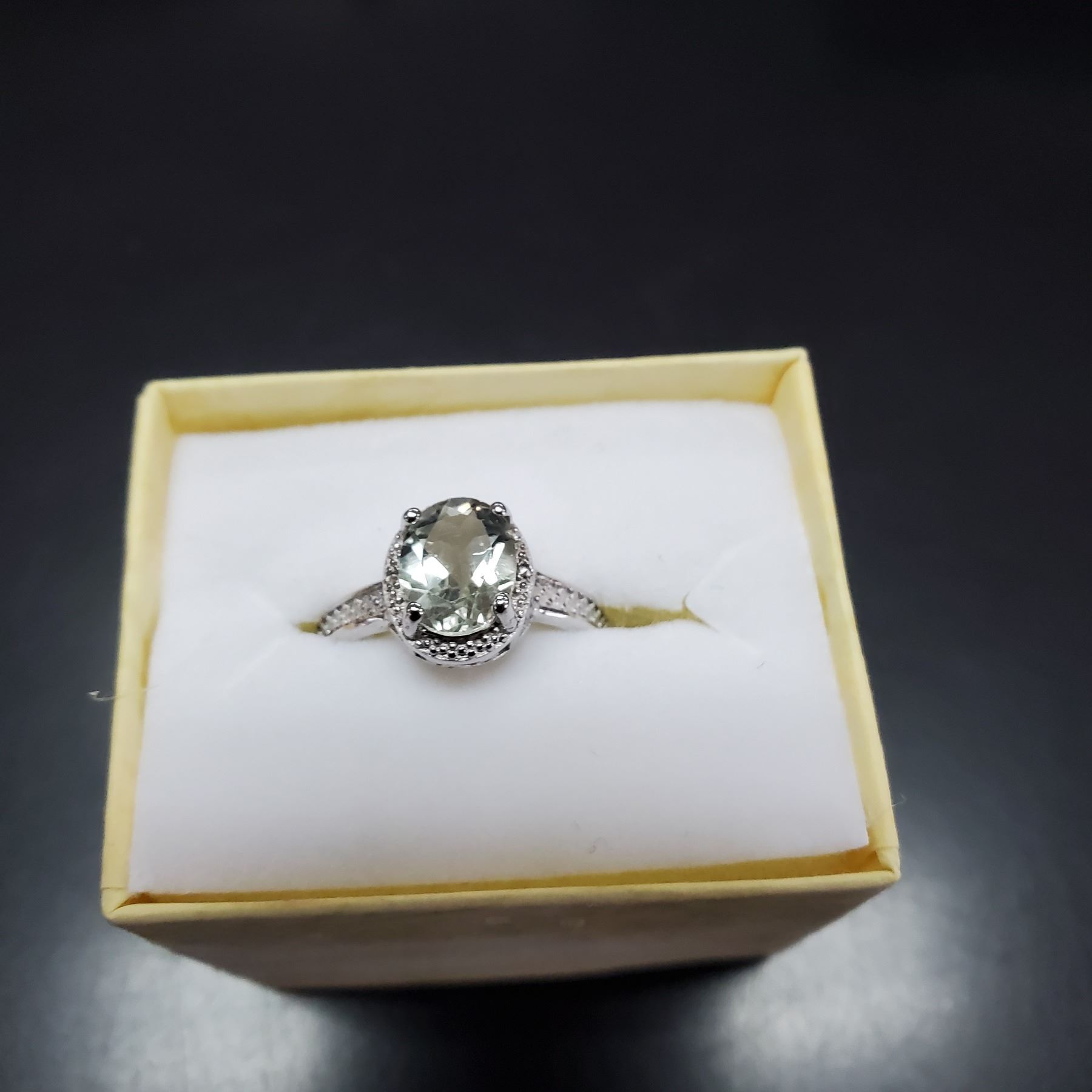 New Green Amethyst + Diamond Ring Set In 925 Sterling Silver W/Platinum Overlay