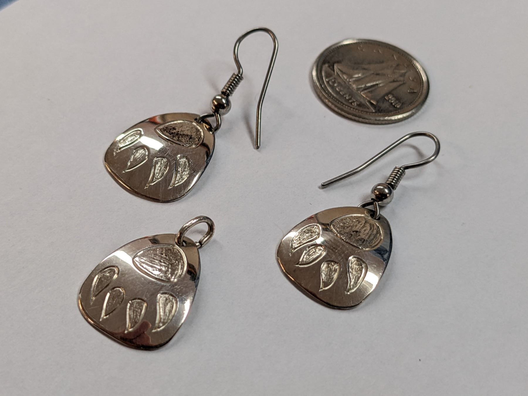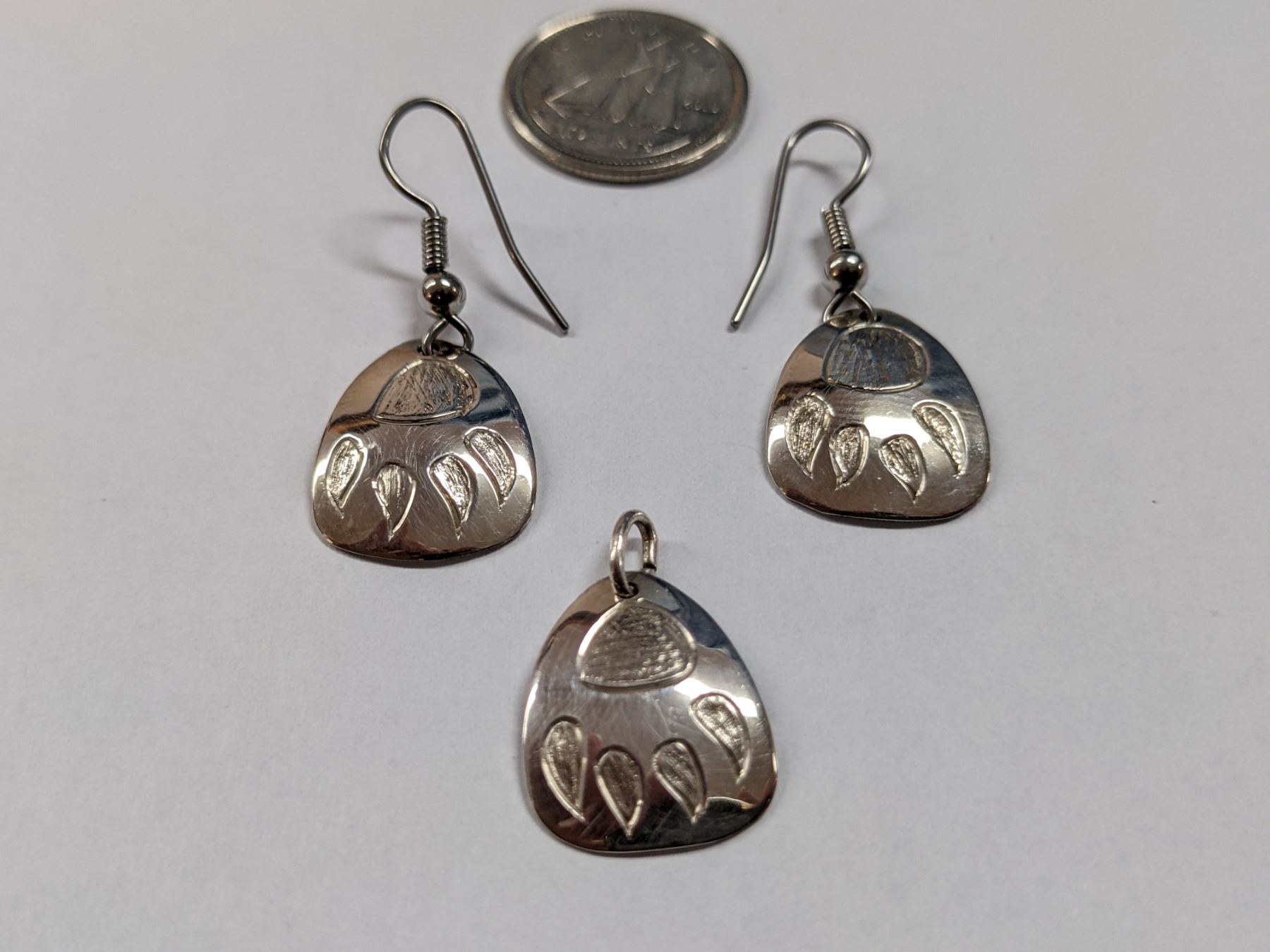 New Handcrafted Sterling Silver Bear Paw Pendant + Earrings Signed By artist, - 17% Buyer Fee. Payment Processed through Live Auction World ( Visa or Master Card ) pick up Saturday, or Tuesday