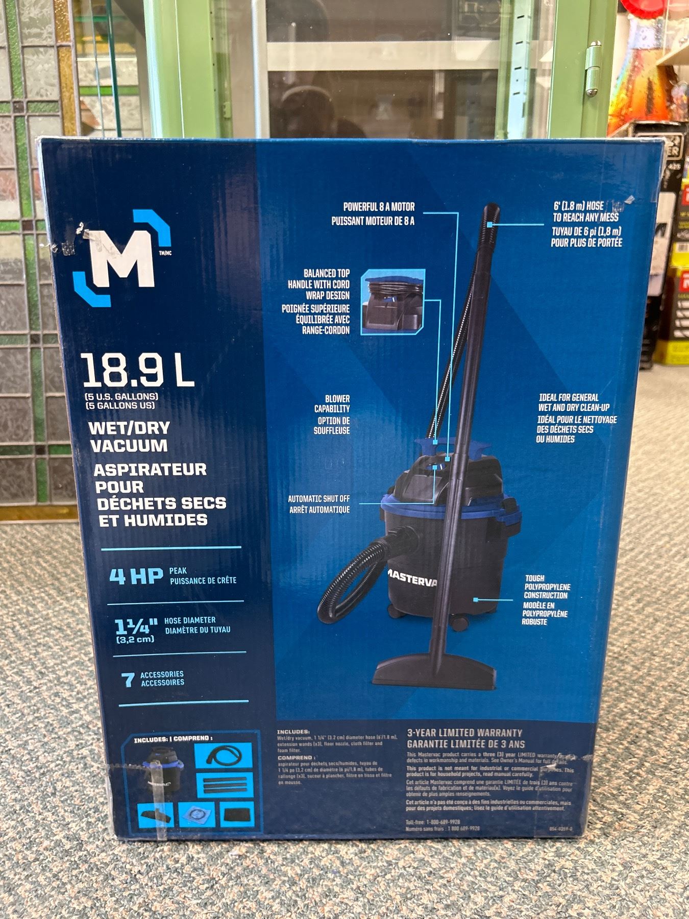 New In Box 4HP Mastervac 18.9L Wet/Dry Vacuum. Never Been Used.