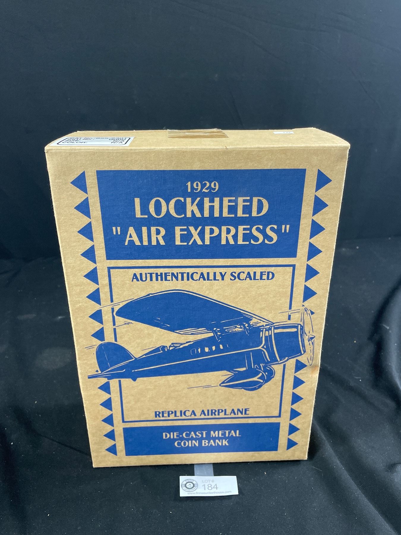 New In Box. Ertl 1929 Lockheed " Air Express" Die Cast Metal Coin Bank