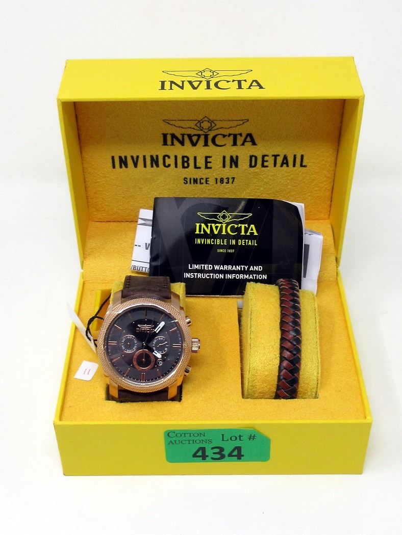 Model 29799. 44mm Quartz watch with leather band and matching bracelet. Complete with box and warranty booklet.