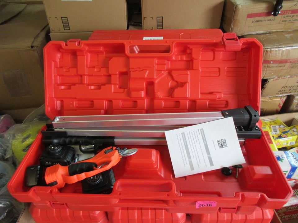 25V Professional Tree Branch Pruner with 7.5 Foot High Reach Extension Pole. 1.8 Inch Cutting Diameter, LED Display Screen. Lithium Battery Powered,