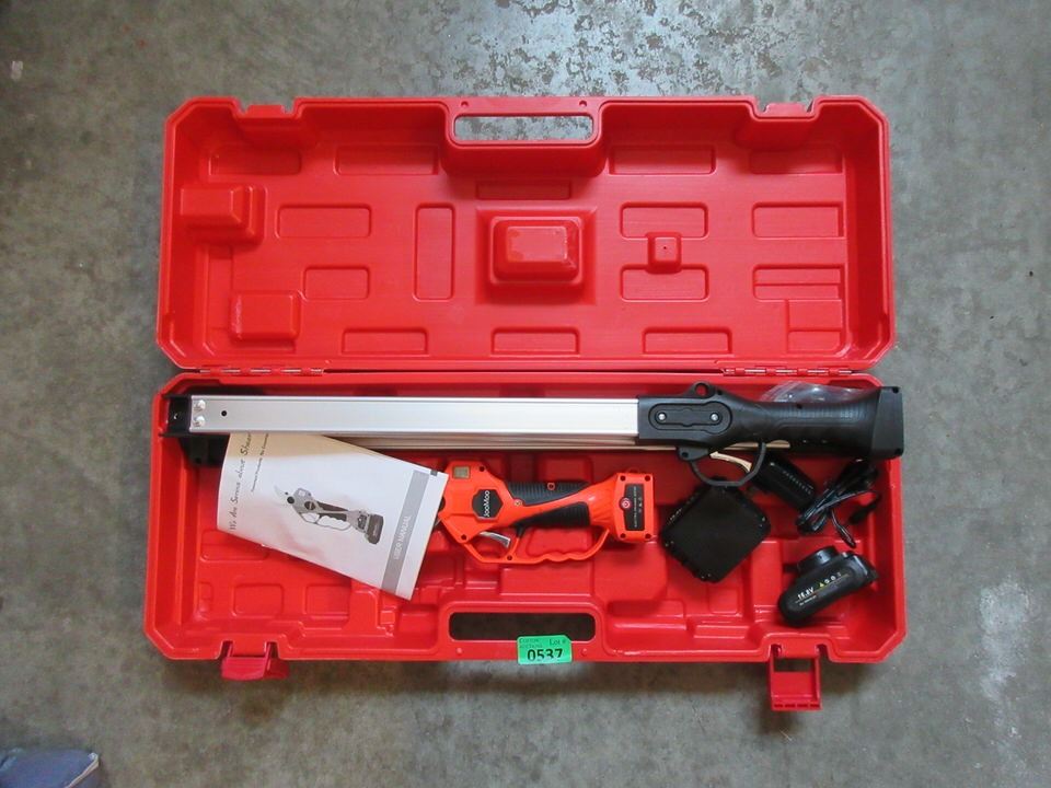 16.8V Professional Tree Branch Pruner with 7.5 Foot High Reach Extension Pole. 25-30 mm cutting diameter, LED Display Screen. Lithium Battery Powered.