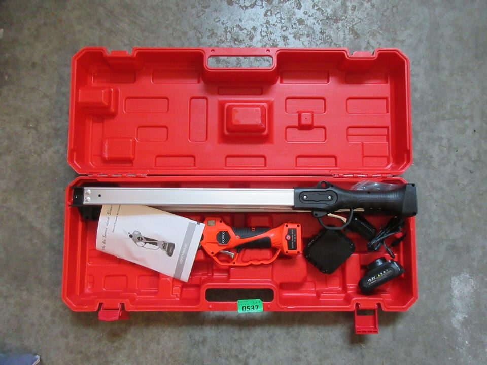 16.8V Professional Tree Branch Pruner with 7.5 Foot High Reach Extension Pole. 25-30 mm cutting diameter, LED Display Screen. Lithium Battery Powered.