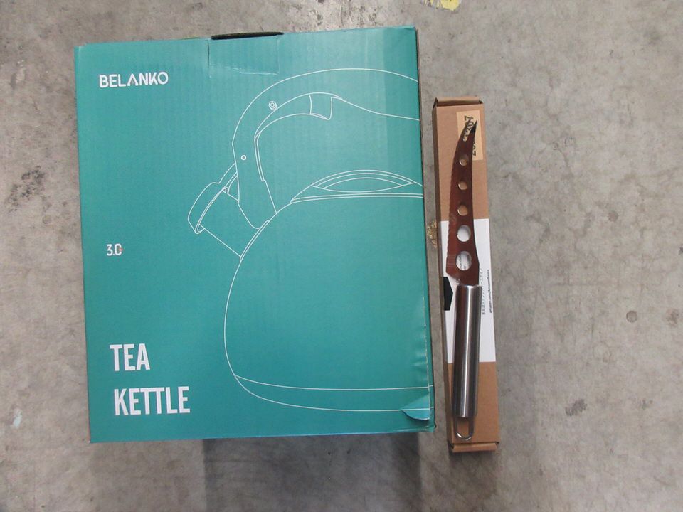 New 3 Litre stove top whistling kettle & new stainless steel cheese knife with 6" blade