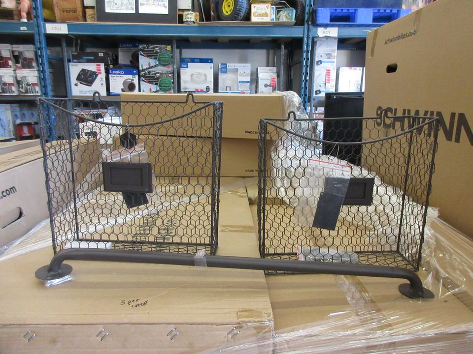 24" Rail with 2 hanging baskets measuring 4" D x 12" W x 12" T.