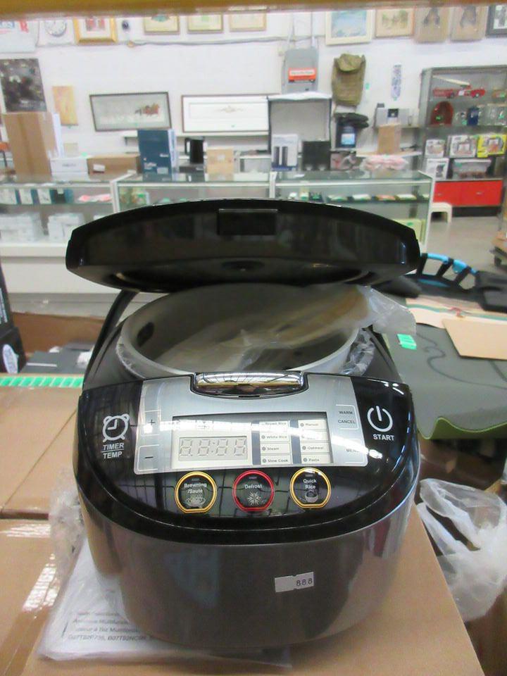 Browning, defrost and quick rice settings. Warmer function and digital menu. Capacity: 5.5 cups uncooked rice/11 cups cooked rice. Includes 2 rice paddles.