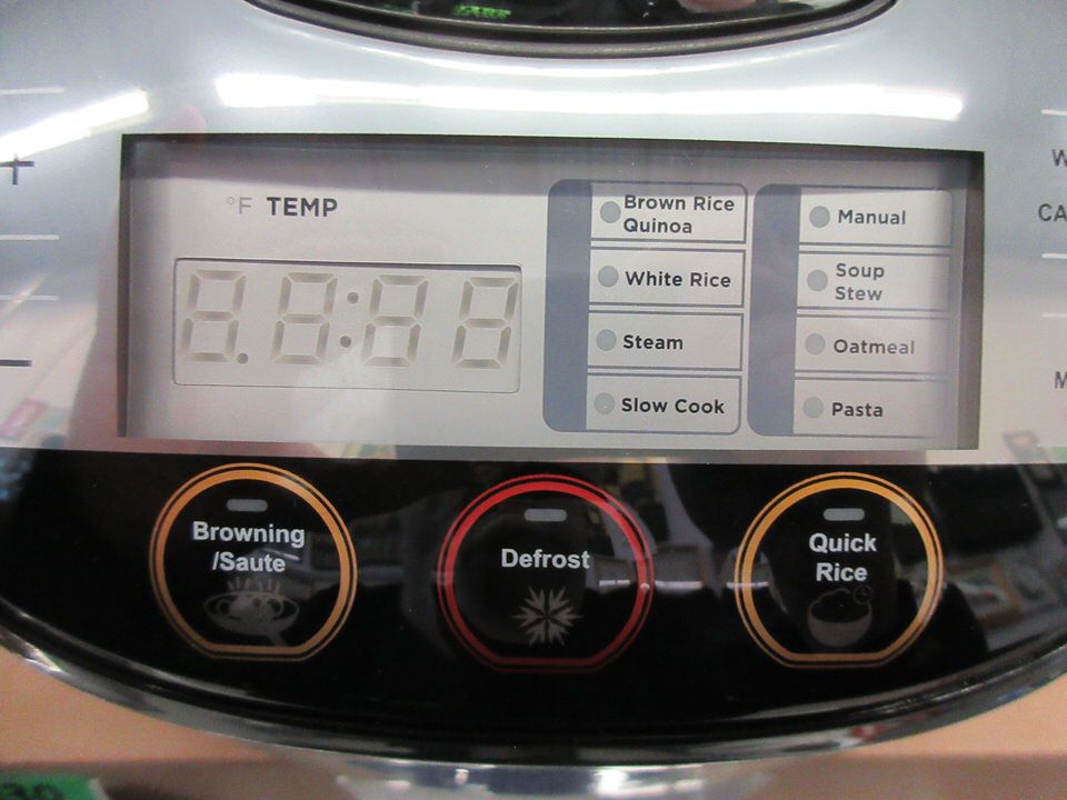Browning, defrost and quick rice settings. Warmer function and digital menu. Capacity: 5.5 cups uncooked rice/11 cups cooked rice. Includes 2 rice paddles.