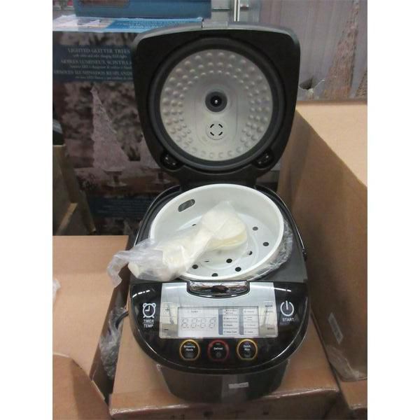 Browning, defrost and quick rice settings. Warmer function and digital menu. Capacity: 5.5 cups uncooked rice/11 cups cooked rice. Includes 2 rice paddles.