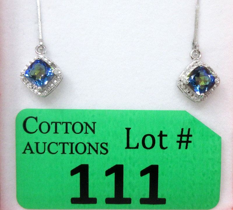 2 CT, Princess cut topaz. Lever style backs. Sterling Silver. Includes $250 certificate.