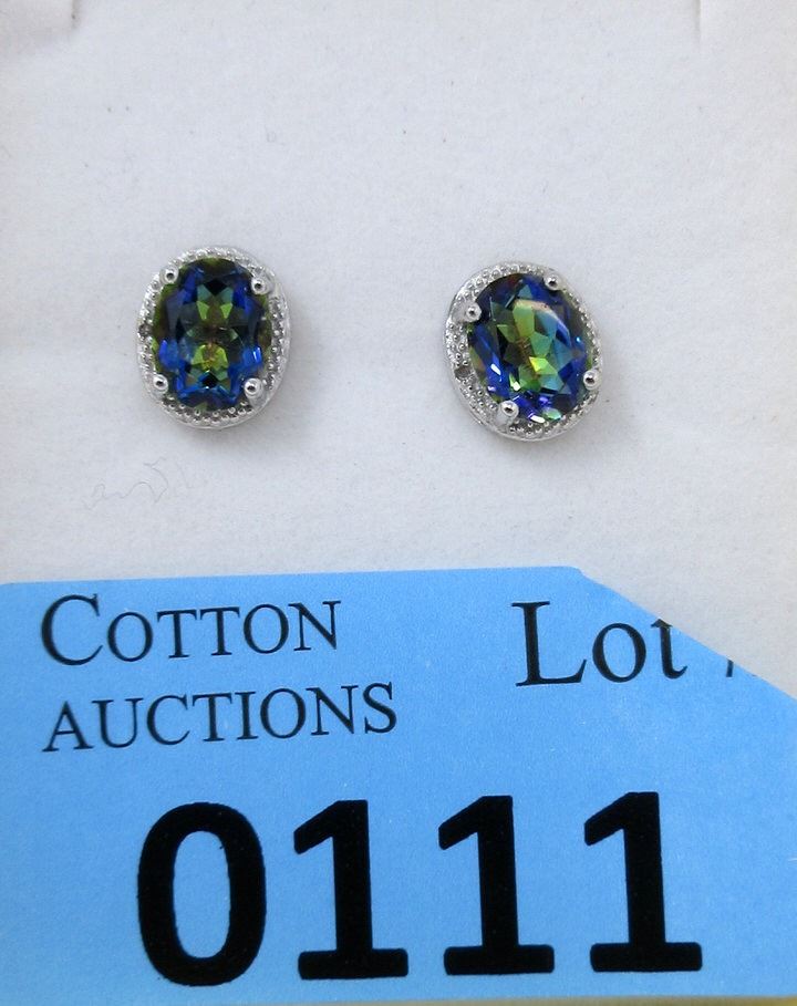 Oval cut, ocean blue topaz set in sterling silver. Post & butterfly backs. Retail value $210.