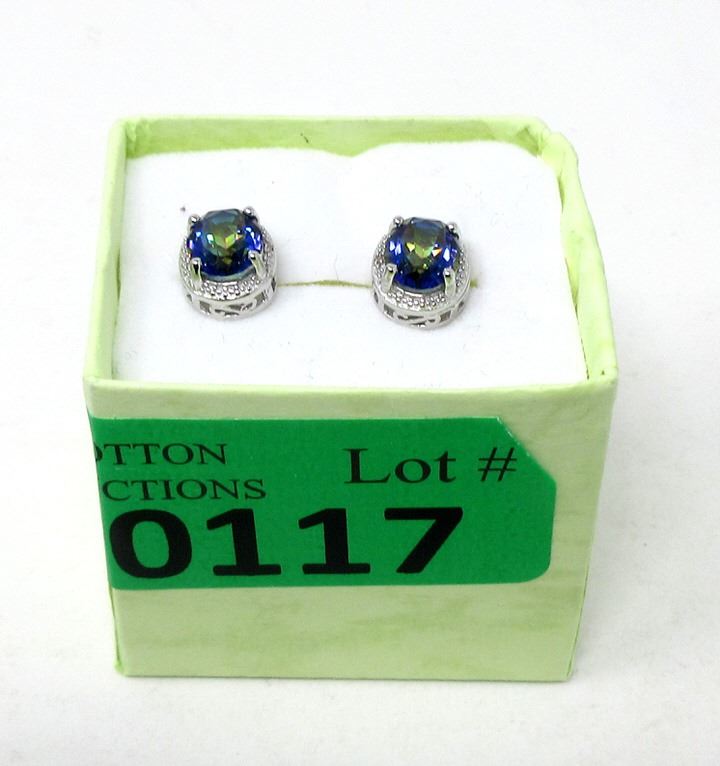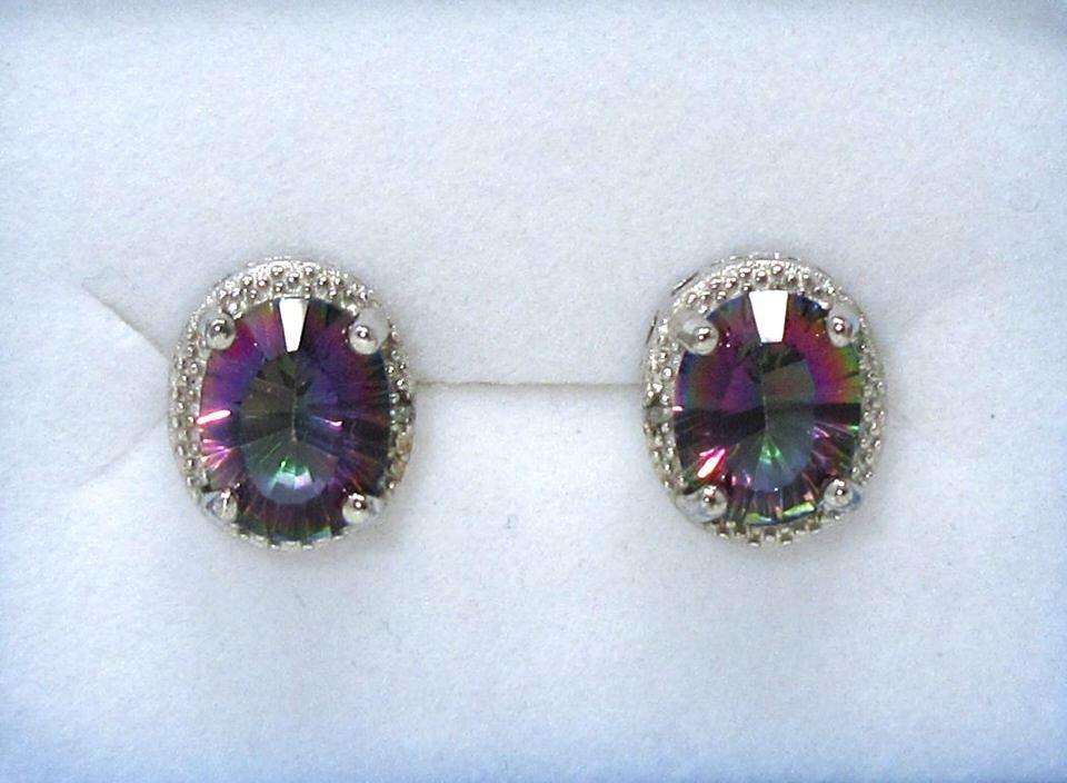Halo set, oval cut topaz in sterling silver. Post & butterfly backs. Retail value $280.