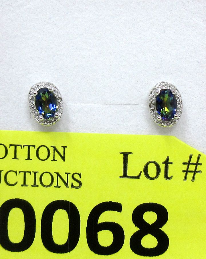 Ocean blue, oval cut mystic topaz. Post & butterfly backs. Retail value $190.
